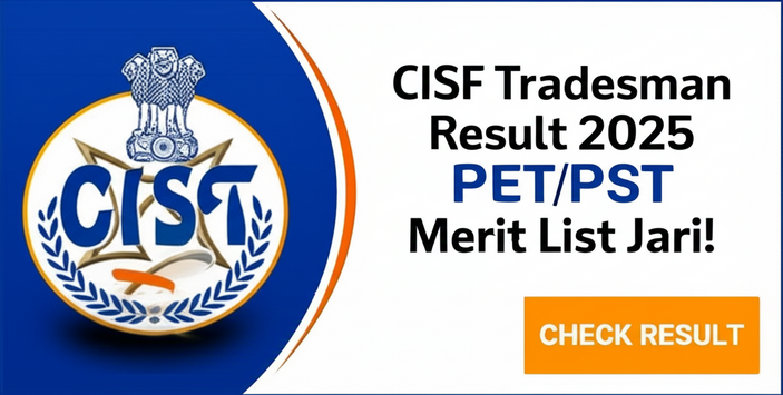 CISF Constable (Tradesmen) PET/PST Result 2025 का बेसब्री से इंतजार कर रहे सभी उम्मीदवारों के लिए एक बहुत ही महत्वपूर्ण और अच्छी खबर सामने आई है! Central Industrial Security Force (CISF) ने हाल ही में Constable (Tradesmen) पदों के लिए आयोजित Physical Efficiency Test (PET) और Physical Standard Test (PST) परीक्षा 2025 के परिणाम आधिकारिक तौर पर घोषित कर दिए हैं। यह परिणाम उन सभी aspirants के लिए एक महत्वपूर्ण पड़ाव है, जिन्होंने 26 सितंबर 2025 को देश भर के विभिन्न केंद्रों पर आयोजित इस कठिन परीक्षा में भाग लिया था। अब सभी उम्मीदवार अपना qualifying status आसानी से ऑनलाइन चेक कर सकते हैं। जिन उम्मीदवारों को इस चरण में shortlist किया गया है, उन्हें अब भर्ती प्रक्रिया के अगले और निर्णायक चरण, यानी Trade Test & Documentation के लिए बुलाया जाएगा। यह result उन लाखों युवाओं के सपनों को साकार करने की दिशा में पहला कदम है जो CISF में शामिल होकर देश की सेवा करना चाहते हैं। अपना result देखने और अगले चरण के लिए आवश्यक e-Admit Card को डाउनलोड करने के लिए कृपया इस विस्तृत आर्टिकल को पूरा पढ़ें और दिए गए निर्देशों का पालन करें।