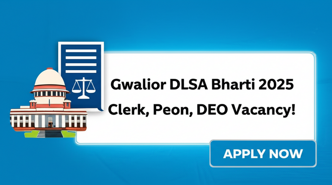 ग्वालियर जिला विधिक सेवा प्राधिकरण (Gwalior District Legal Services Authority) में Sarkari Naukri का इंतजार कर रहे उम्मीदवारों के लिए एक अच्छी खबर है! DLSA, ग्वालियर ने Clerk, Receptionist cum Data Entry Operator और Office Peon के पदों पर भर्ती के लिए एक notification जारी किया है। यह भर्ती contractual basis पर एक साल के लिए की जा रही है। इच्छुक और योग्य उम्मीदवार 01 दिसंबर 2025 से 19 दिसंबर 2025 तक offline माध्यम से apply कर सकते हैं। यह उन कैंडिडेट्स के लिए एक सुनहरा अवसर है जो Gwalior District Court में अपना करियर बनाना चाहते हैं। सभी महत्वपूर्ण डिटेल्स जैसे application dates, eligibility criteria, age limit, vacancy details और application process को जानने के लिए इस आर्टिकल को पूरा पढ़ें।