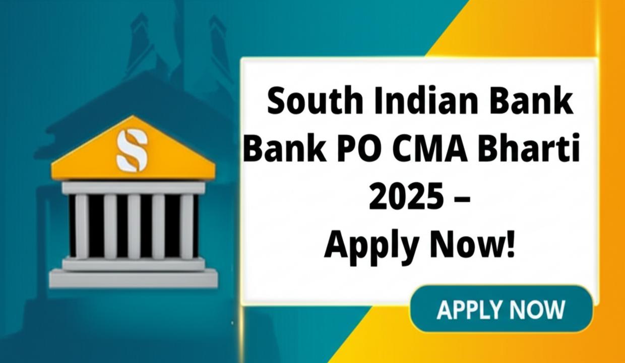 South Indian Bank ने Probationary Officer (CMA) के पदों पर भर्ती के लिए एक नई Recruitment Notification जारी की है। यह उन सभी कैंडिडेट्स के लिए एक शानदार अवसर है जो बैंकिंग सेक्टर में अपना करियर बनाना चाहते हैं। इस भर्ती के तहत योग्य भारतीय नागरिकों से Scale I Cadre में Probationary Officer (CMA) के लिए Online Applications आमंत्रित किए गए हैं। अगर आप इन पदों के लिए apply करने में interested हैं, तो सभी महत्वपूर्ण जानकारी जैसे important dates, application fees, age limit, educational qualification और how to apply यहाँ विस्तार से दी गई है। आवेदन प्रक्रिया 11 नवंबर 2025 से शुरू होकर 19 नवंबर 2025 तक चलेगी। इसलिए, Candidates को सलाह दी जाती है कि वे अंतिम तिथि से पहले अपना आवेदन पूरा कर लें।