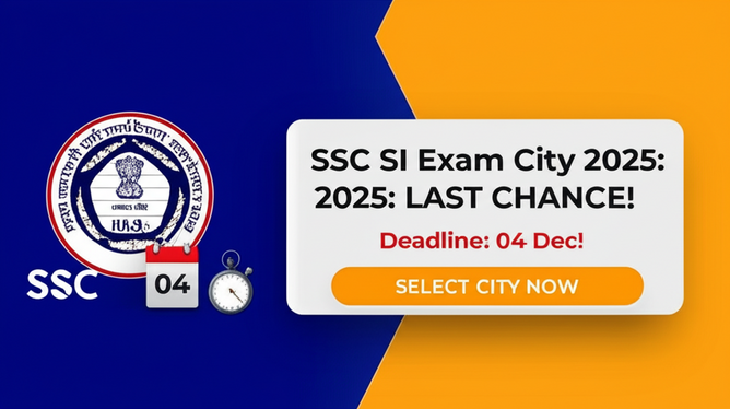 Staff Selection Commission (SSC) ने Sub-Inspector in Delhi Police and CAPF Examination (CBE) 2025 के सभी उम्मीदवारों के लिए एक महत्वपूर्ण सूचना जारी की है। जिन कैंडिडेट्स ने पहले अपने पसंदीदा एग्जाम सिटी का चुनाव नहीं किया था, उन्हें अब 04th December 2025 तक (सुबह 11:00 बजे तक) अपने शहर का चयन करने का अंतिम अवसर दिया गया है। यह चयन feedback module के माध्यम से किया जाएगा, जो कि SSC की official website पर उपलब्ध है।